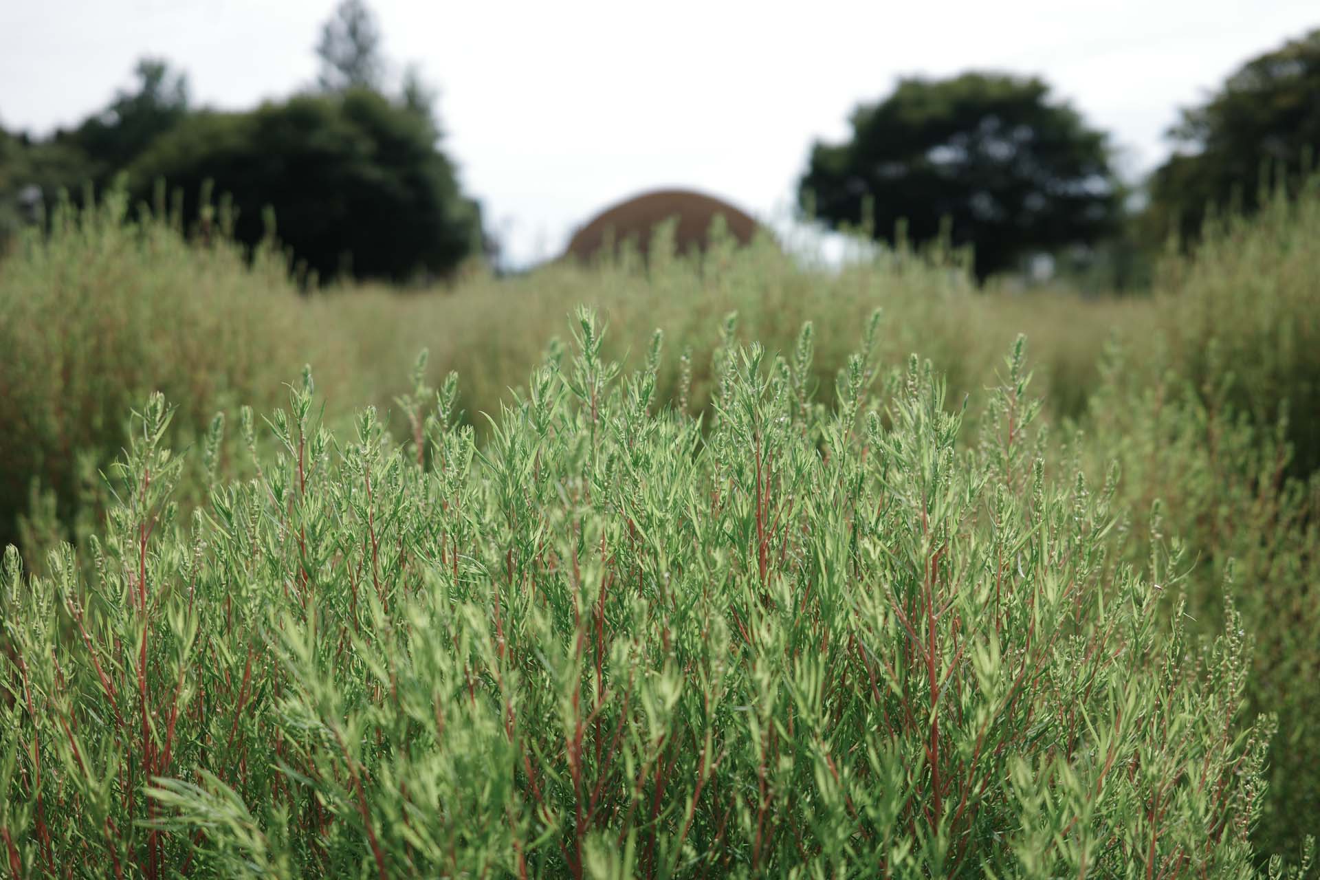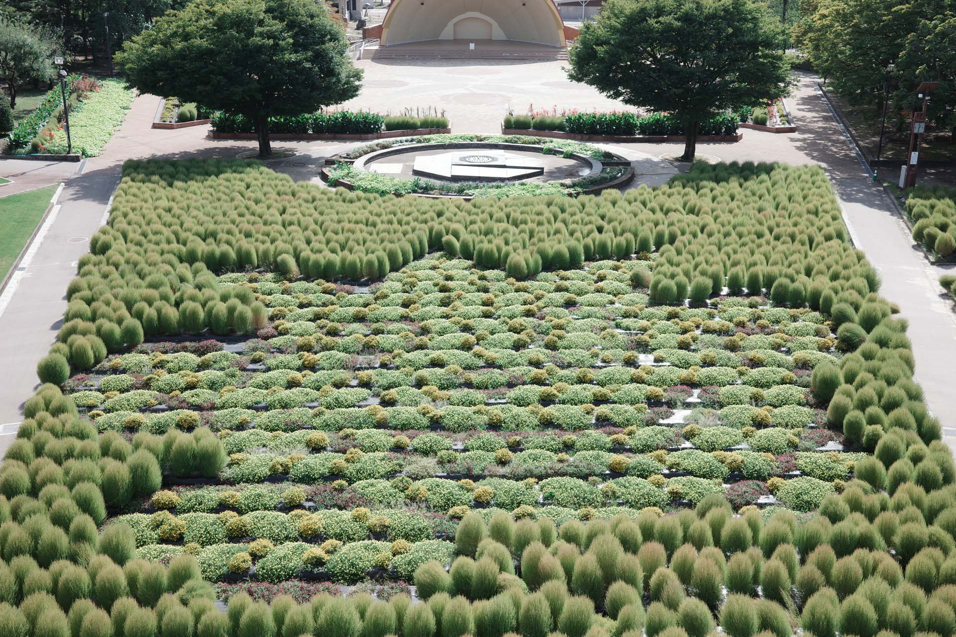 春になるとチューリップが咲き乱れる砺波チューリップ公園。その大花壇では、現在コキアが絶賛モコモコ中。