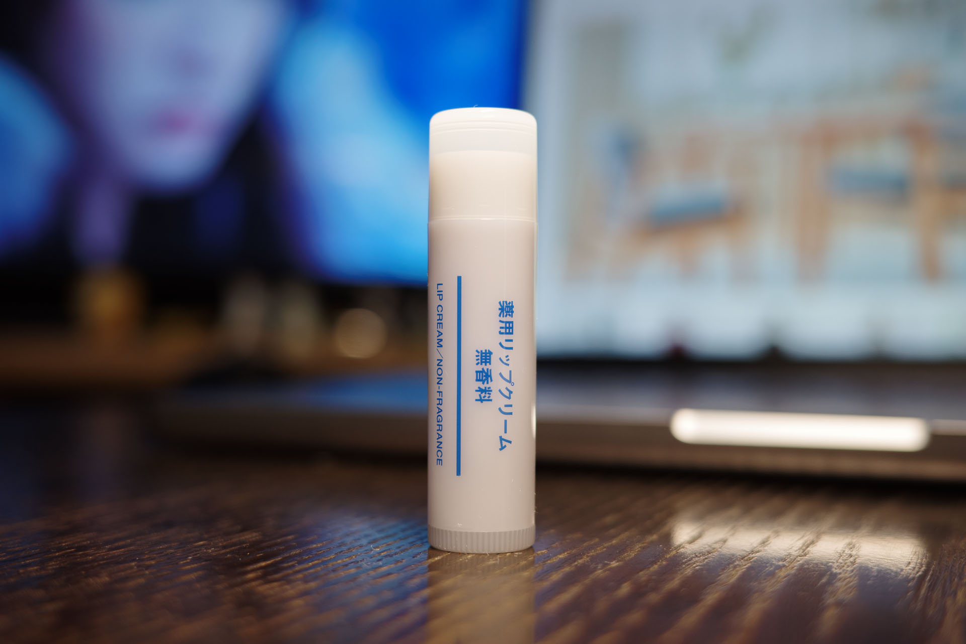 現在使っているのは無印良品の「薬用リップクリーム・無香料」。うるおい成分としてホホバ油が配合された、ニオイが気にならない無香料タイプのリップクリーム。メントールのモノと敏感肌用もあったけれど、いつもどおり無香料タイプを。